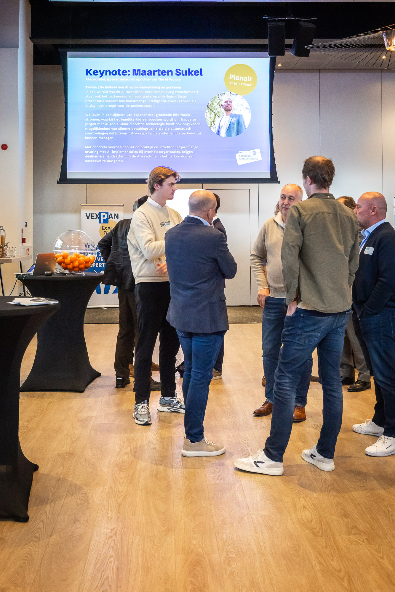 Daarna nam keynote spreker Dr. Maarten Sukel (The AI Factory) ons mee in de razendsnelle ontwikkelingen van kunstmatige intelligentie en wat dit betekent voor de parkeersector. Van slimme camera’s die overtredingen automatisch detecteren tot systemen die parkeerdruk voorspellen – AI verandert de manier waarop we omgaan met ruimte, data en mobiliteit.