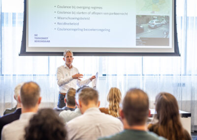 ’s Middags konden deelnemers kiezen uit twee rondes verdiepingssessies over actuele thema’s: brandveiligheid in parkeergarages, haalbare ambities bij autoluwe steden, cyberveiligheid en de menselijke maat in handhaving. Ook onderwerpen als demografie, parkeernormen en gedragsverandering kwamen uitgebreid aan bod. De sessies leverden discussies en mooie inzichten op over hoe we samen ruimte maken voor de leefomgeving van morgen.